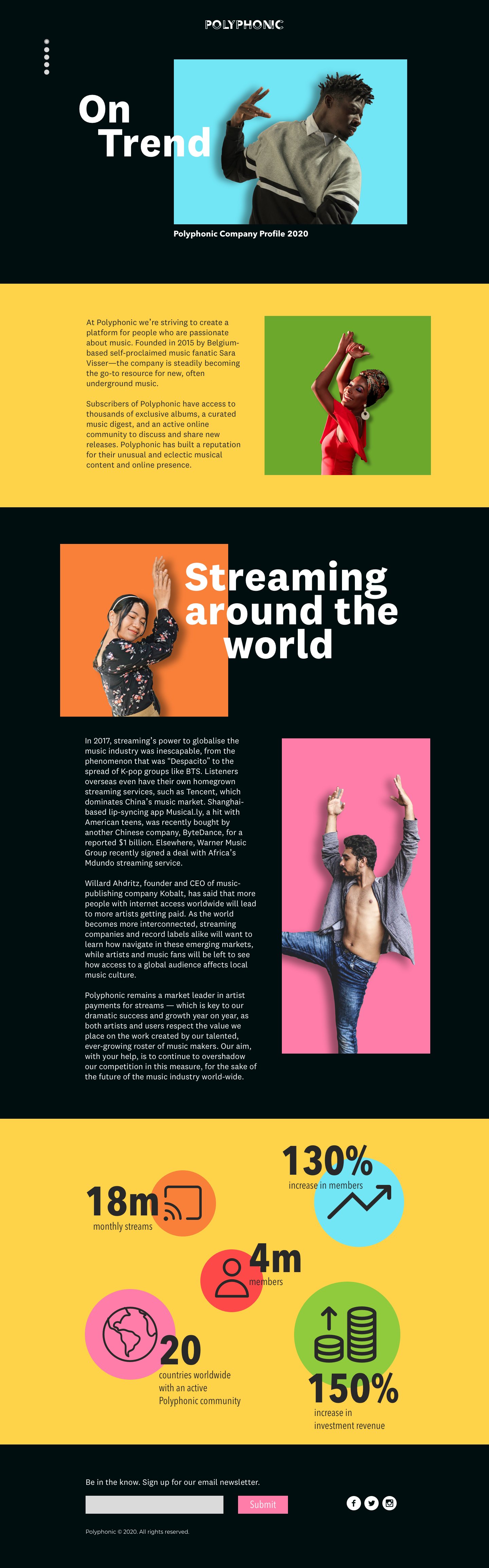 Polyphonic, a music streaming and community site, wants their annual summary in the form of a microsite.
